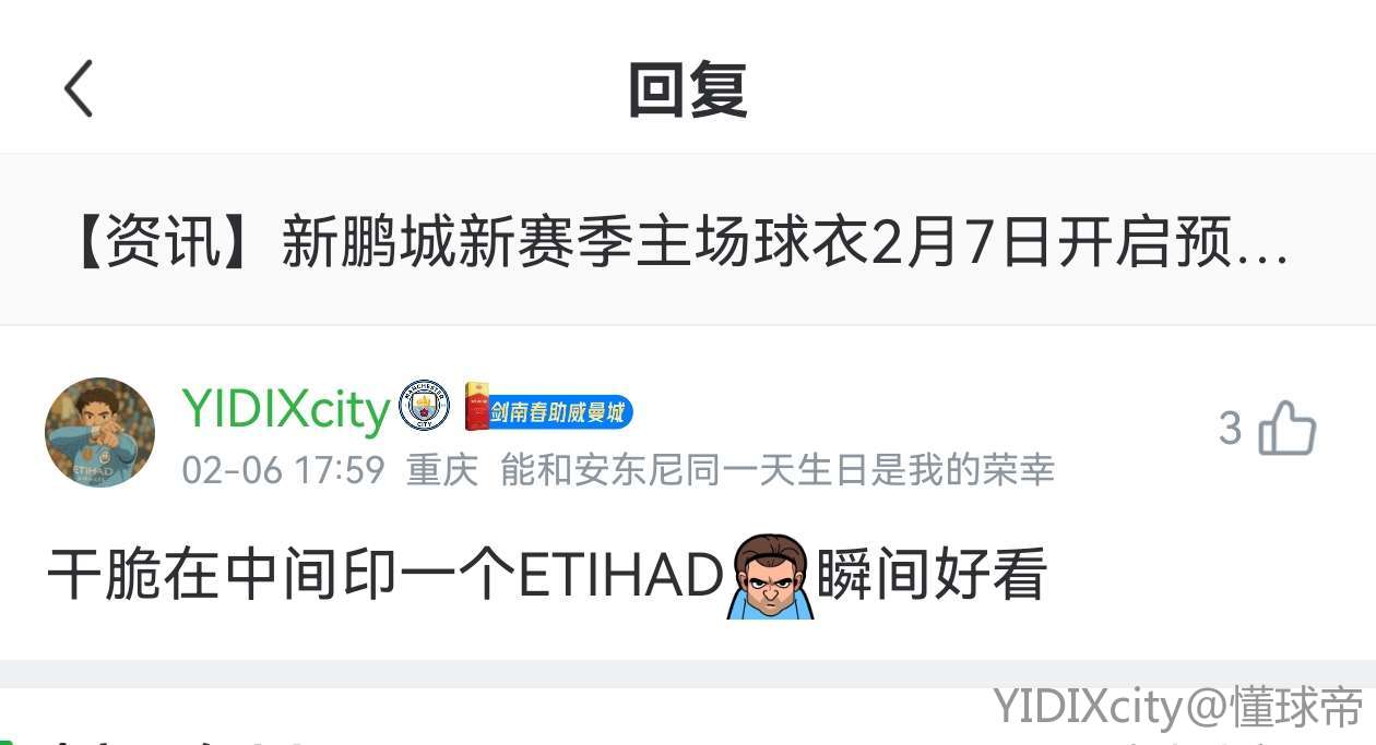 这曼城球衣越看越像深圳新鹏城球衣了