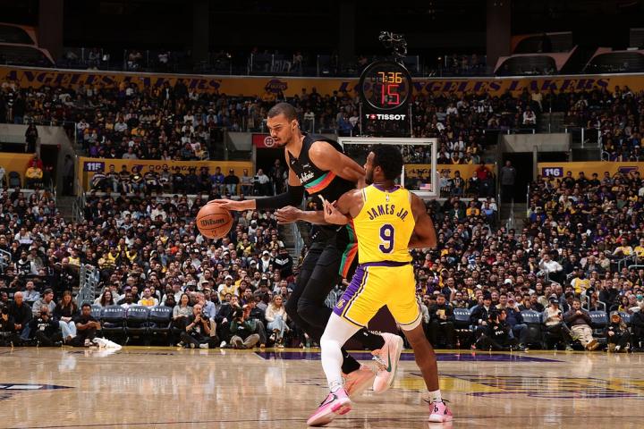 扫描下载懂球帝首页>动态> 炸裂,文班亚马对阵湖人半场17投12中砍下37分