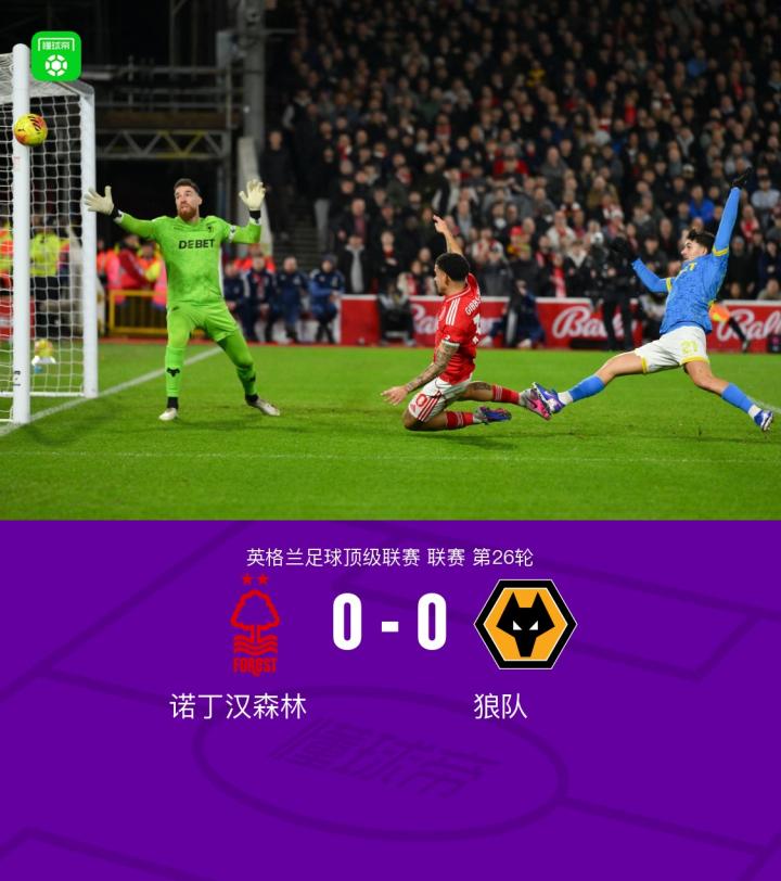 02-12 03:36半场战报:卢卡进球被吹,诺丁汉森林0-0狼队