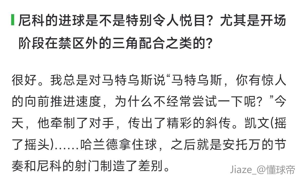 尼科的进球是不是特别令人悦目?尤其是开场阶段在禁区外的三角配合之类的?