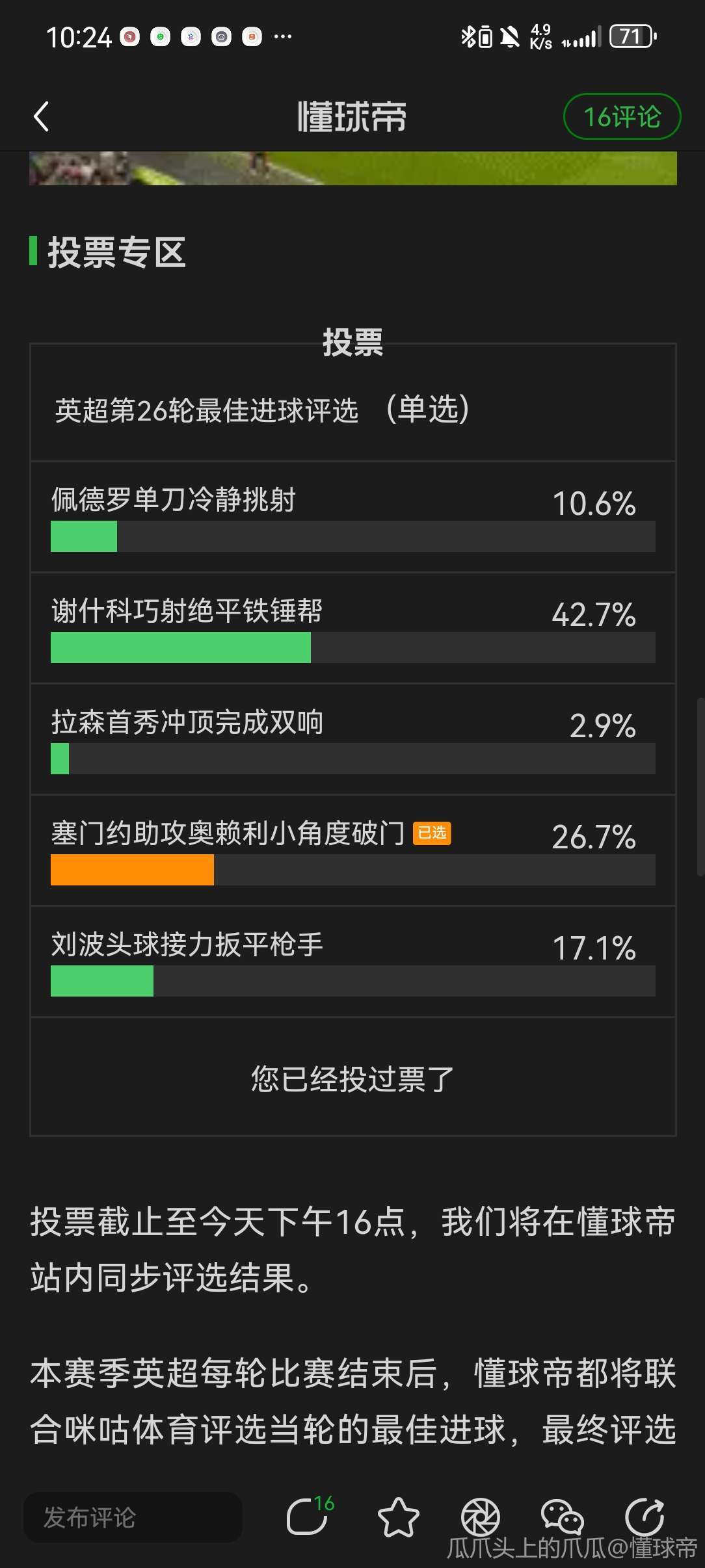 扫描下载懂球帝首页>动态> 懂球帝X咪咕英超第26轮最佳进球评选:谢什科绝平,刘波头球接力