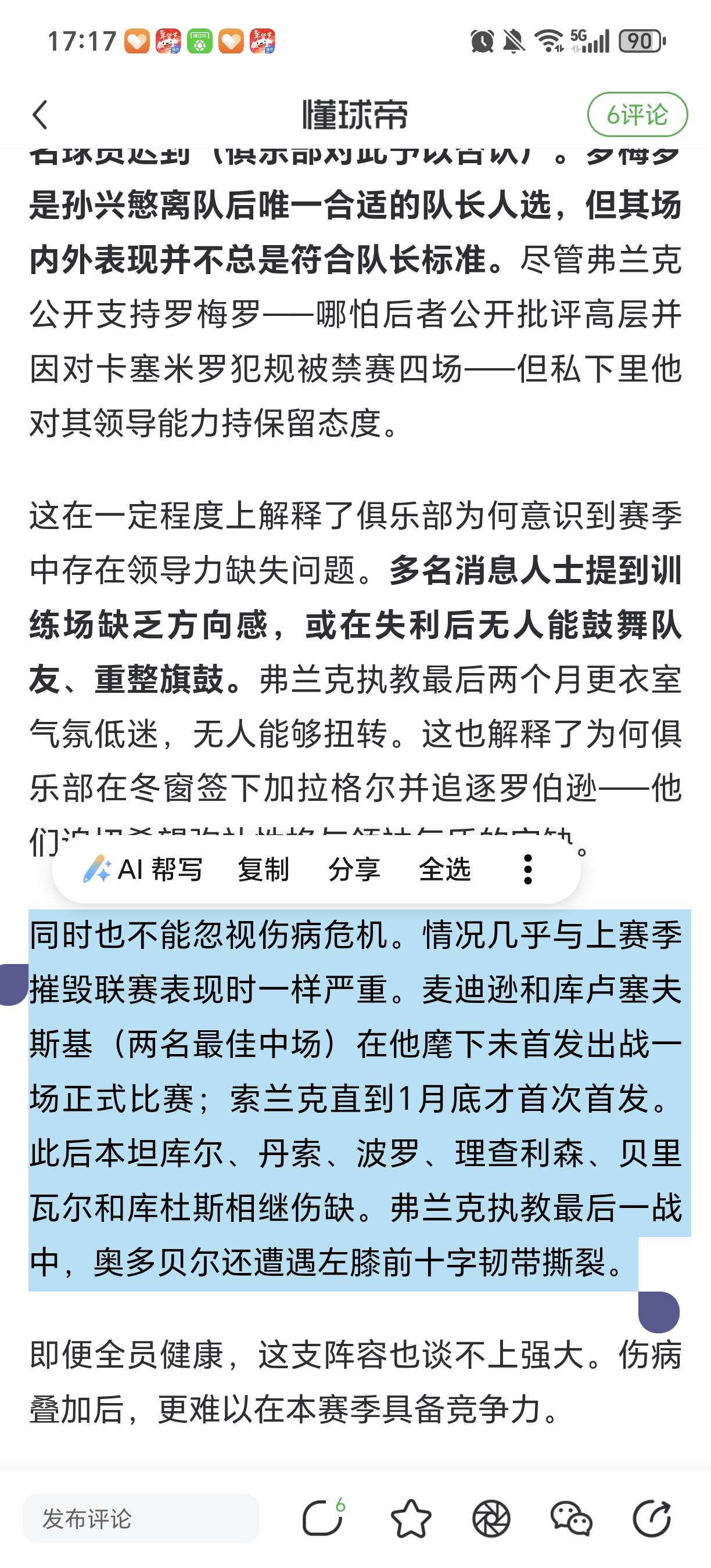 我觉得比起教练你刺先请点老中医吧,年年这时候伤病圈英超最多,以前我以为是澳波给干废的现在换了弗嚼爷踢养生足球照样伤兵满营