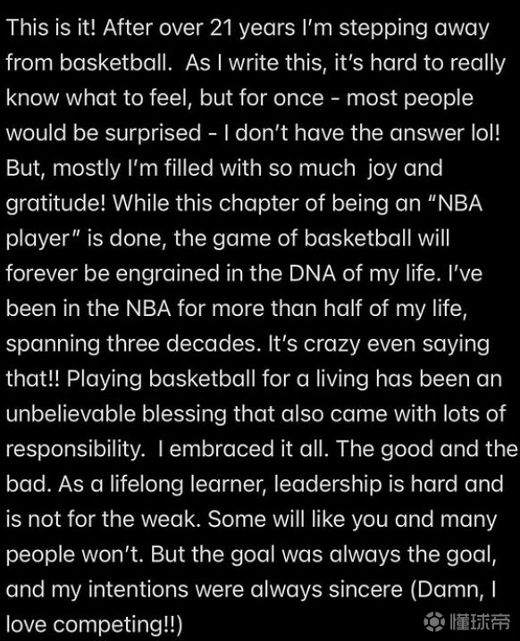 扫描下载懂球帝首页>动态> 保罗:在21年的生涯后,我决定从NBA退役