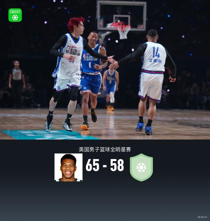 北京时间2月14日NBA全明星名人赛,字母哥队65-58战胜安德森队。