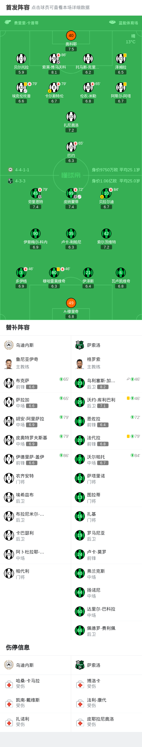 第10分钟,乌迪内斯球员埃克伦坎普助攻索莱-博马沃科打入一球。