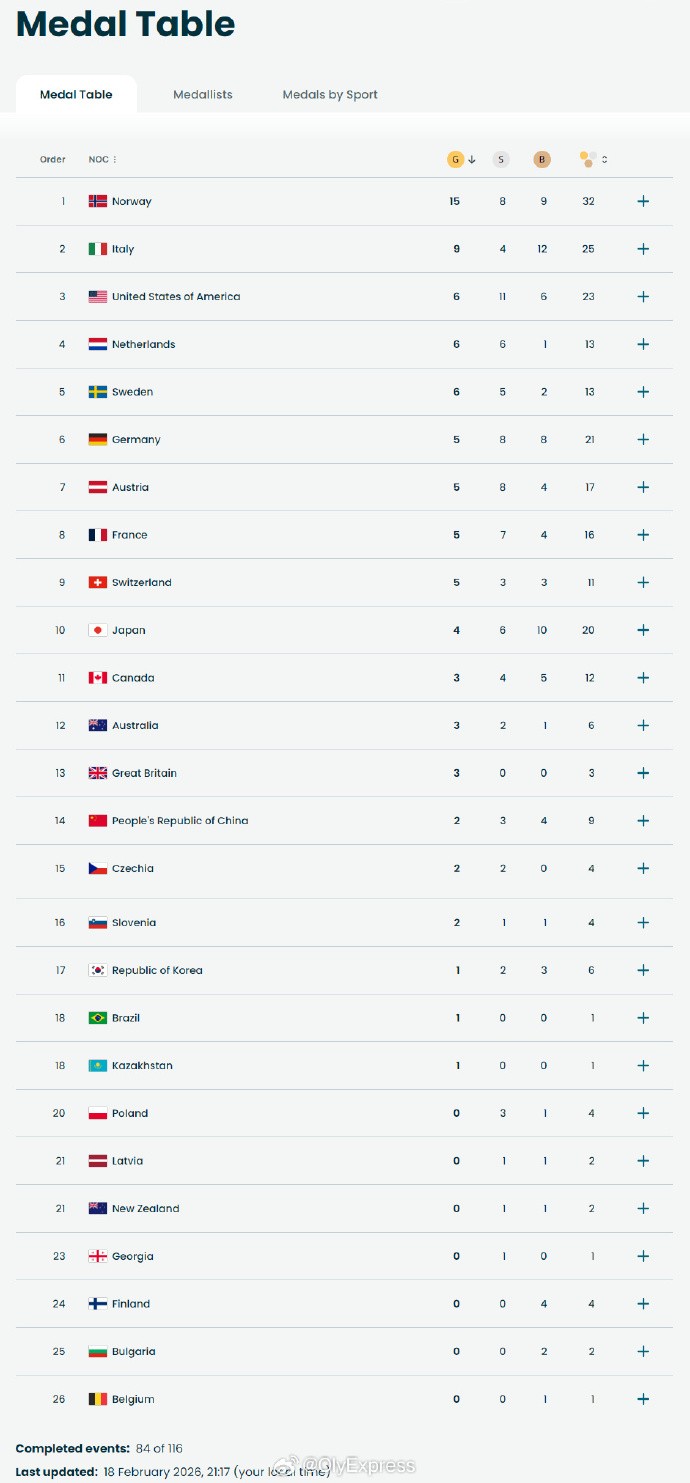 北京时间2月18日,中国代表团在短短两小时内接连斩获两枚金牌,中国队目前以2金3银4铜的成绩,在金牌榜上成功攀升至第14位。