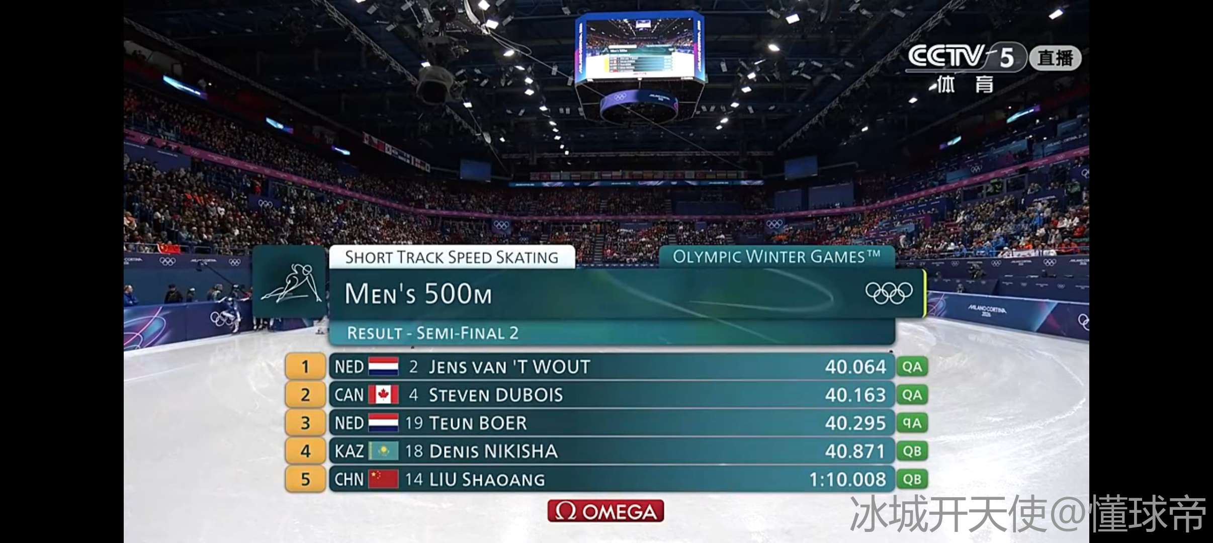 随着刘少昂摔出赛道,未能进入决赛,短道速滑全军覆没,0金牌结束本届冬奥会。