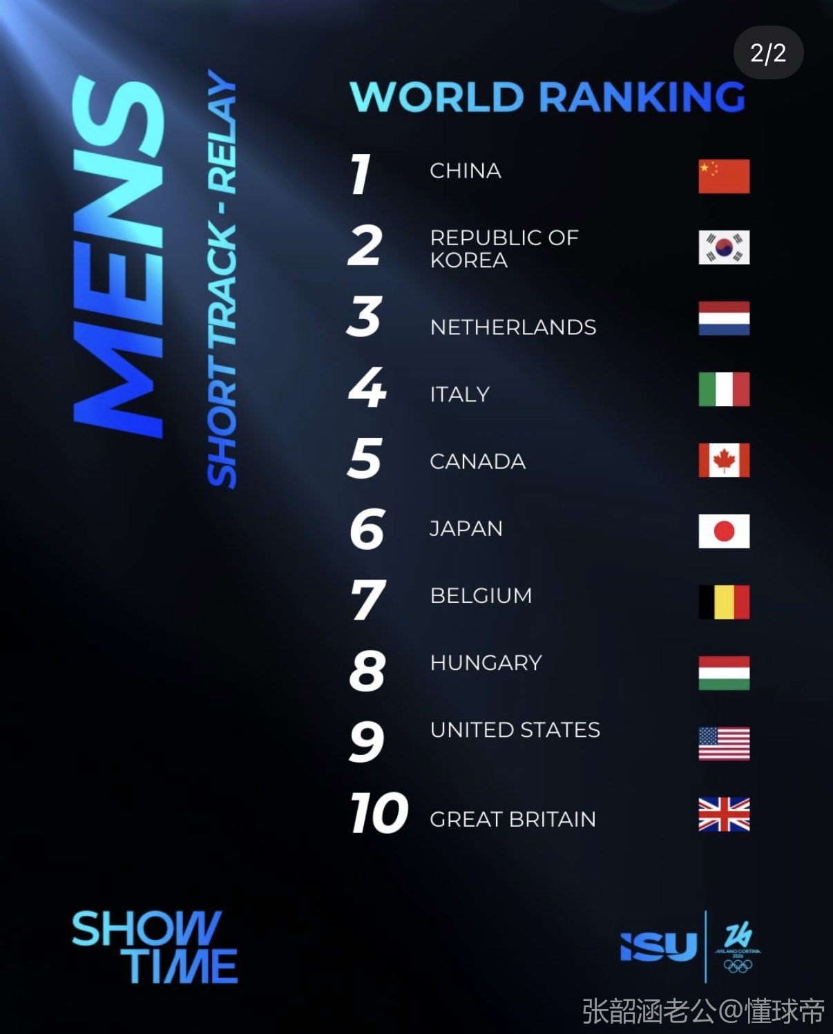 5000米中国男接世界排名第一,但是这次连决赛都没进去,真的不应该,好好总结吧中国短道必须大换血了。