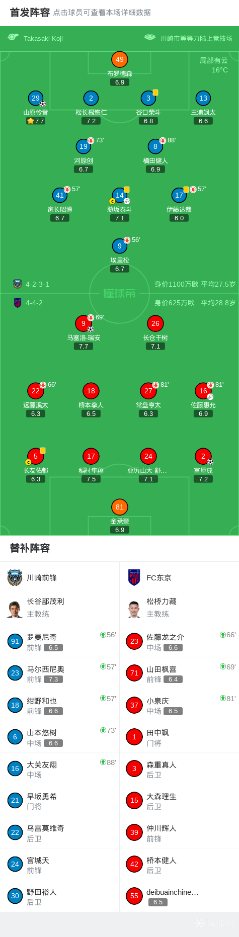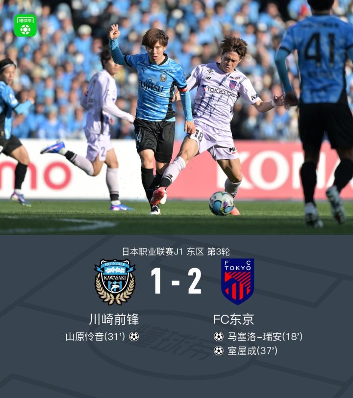 北京时间2月21日日本职业联赛J1东区第3轮,川崎前锋主场对阵FC东京。川崎前锋山原怜音世界波破门。FC东京马塞洛-瑞安、室屋成分别破门。最终比分川崎前锋1-2FC东京。