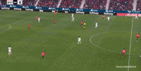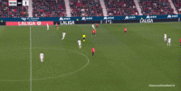 第81分钟,换位到右路的穆尼奥斯打了60分钟的卡瓦哈尔,这次打掉了阿拉巴,让奥萨苏纳又打出了一次中路的好机会: