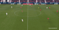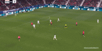 其中一次就是上半场的开分球,在皇马的进攻和逼抢都极其低效的情况下,奥萨苏纳很容易地就能获得起脚空间,就像这次,在边路的处理压力都不大,于是一脚斜长传打到结合部,让皇马付出了点球的代价: