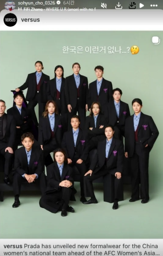 正在出征澳大利亚女足亚洲杯的韩国女足因为一个“社交动态”上了热搜!近日,韩国女足老将赵昭贤在社交媒体看到中国女足将身穿普拉达公司设计的西装出征亚洲杯后,她坐不住了,发了一条“韩国没有这样的服装吗?”结果在韩国引起了“男女不平等”等一系列讨论和轩然大波。事实上,韩国女足有自己的本土赞助商,并且一直专门按照韩国足球的传统设计特制服装,但显然,赵昭贤等人不买账,她们更喜欢国际化奢侈品牌普拉达这样的企业来赞助自己。