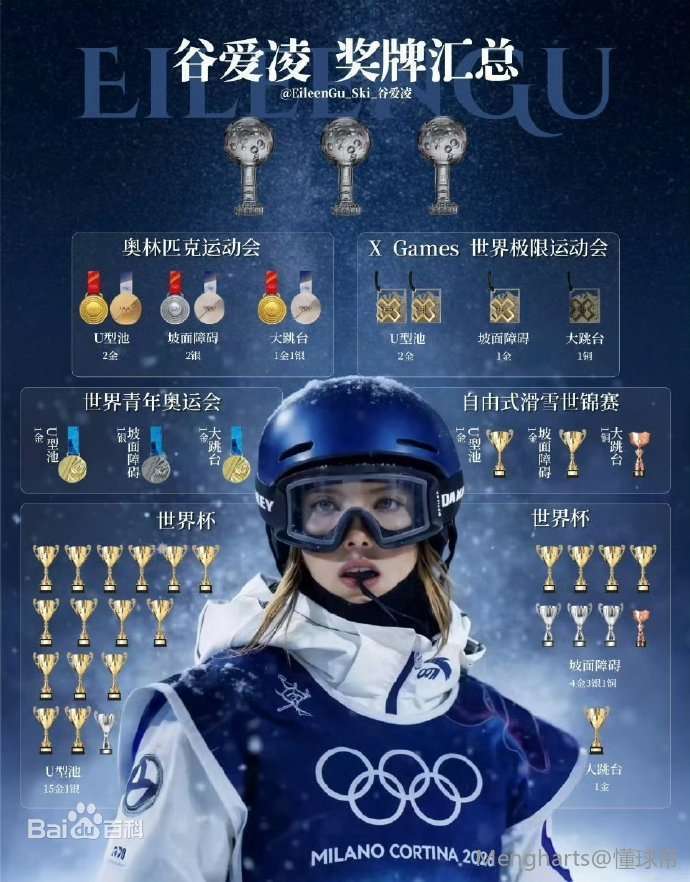 到米兰之前,很多人对谷爱凌的整体状态抱有疑虑。然而她在赛程最漫长、体能消耗最大的情况下,再次在三个项目上都登上了领奖台,就此成为自由式滑雪奥运金牌、奖牌都最多的选手。听起来确实有点疯狂:谷爱凌此前四年没有比过一次大跳台,一比奥运会就是银牌。