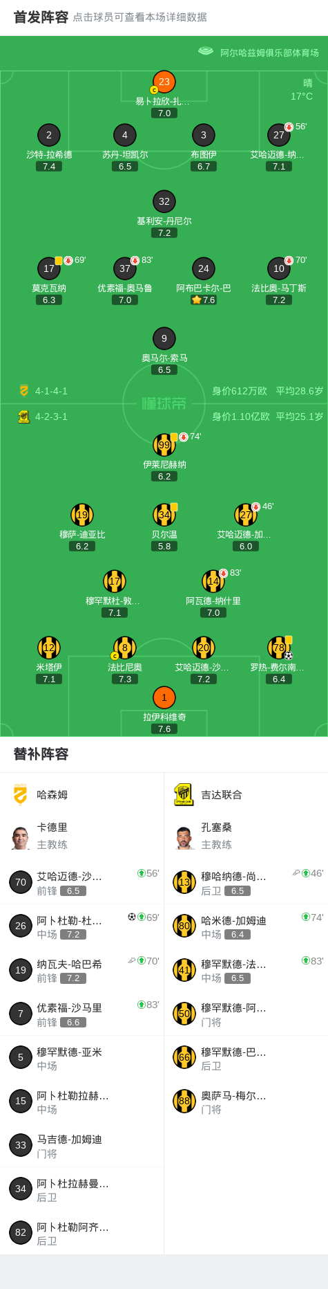 第84分钟,哈森姆球员纳瓦夫-哈巴希助攻阿卜杜勒-杜瓦希打入一球。