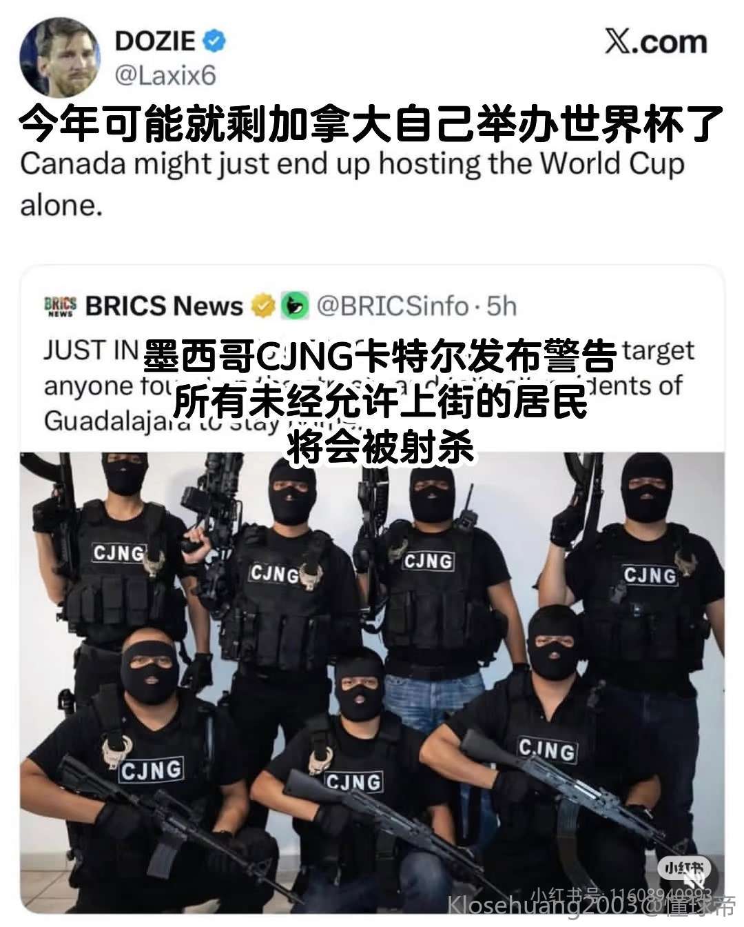 不过到了周一晚间,墨西哥当局已逐步展开秩序恢复工作。深夜时分,国际足联也公开发声,对墨西哥表示支持。国际足联发言人明确表示,有关当地存在重大安全隐患的说法,既不准确也带有误导性,同时坚定表态,他们对墨西哥、加拿大、美国这三个世界杯主办国均“充满信心”。