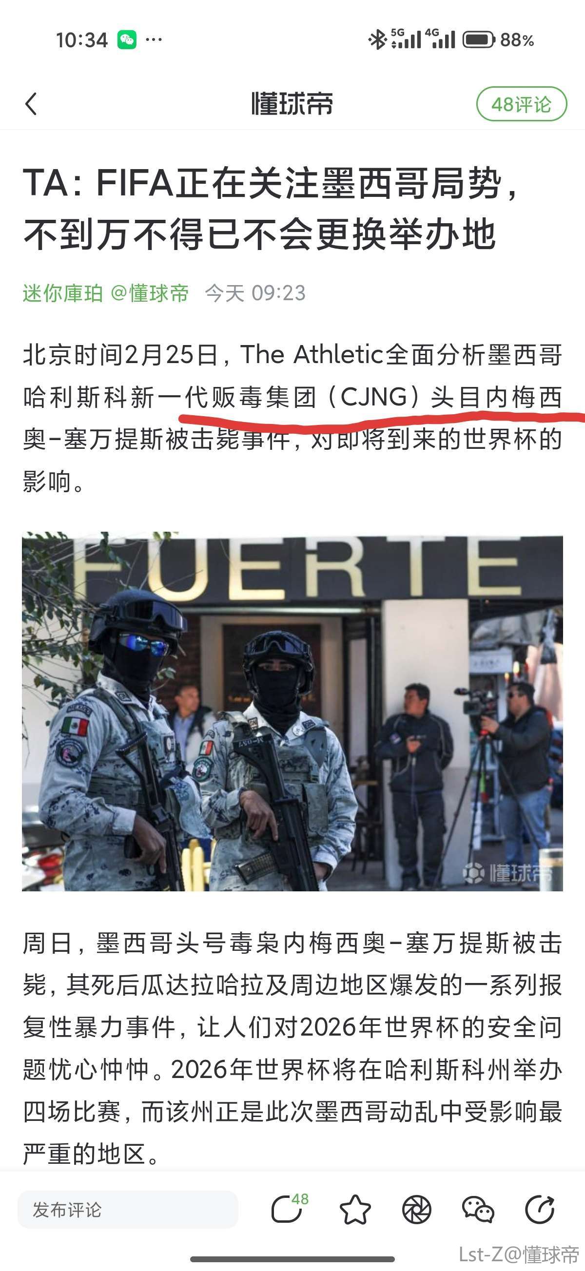 北京时间2月25日,The Athletic全面分析墨西哥哈利斯科新一代贩毒集团(CJNG)头目内梅西奥-塞万提斯被击毙事件,对即将到来的世界杯的影响。