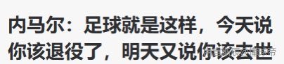 扫描下载懂球帝首页>动态> 内马尔:足球就是这样,今天说你该退役了,明天又说你该去世界杯