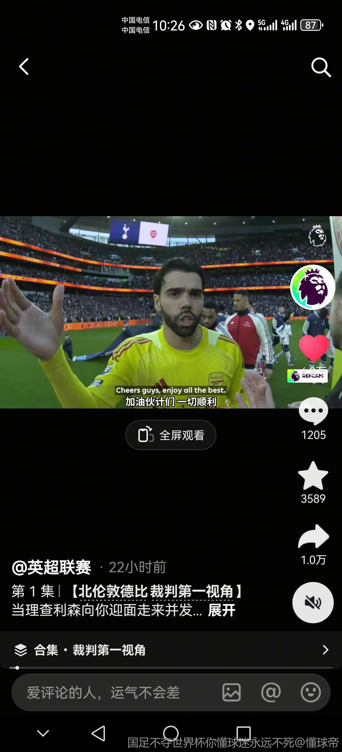 裁判第一视角里面看这个球其实很明显,可以去英超官方的裁判第一视角视频里面看