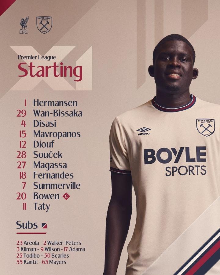 扫描下载懂球帝首页>动态> 利物浦vs西汉姆:萨拉赫、埃基蒂克首发,麦卡、加克波出战