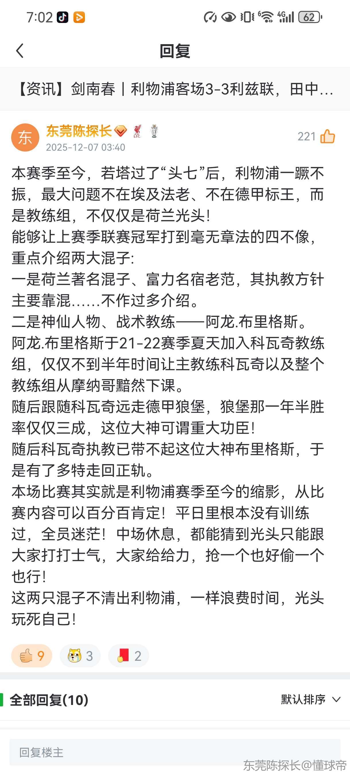 早说过这布里格斯是个江湖老千,而且这个荷兰老范也是顶级混子。两条顶级废边,教练组一塌糊涂,这个赛季能争四算是奇迹了。