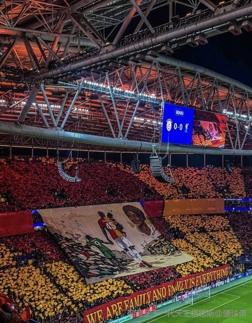 加拉塔萨雷对待奥斯梅恩也很好。这轮欧冠给奥斯梅恩设计的tifo:WE ARE FAMILY AND FAMILY IS EVERYTHING,图画是穿着加拉塔萨雷的奥斯梅恩牵着小时候身穿绿色9号带给自己幸运的球衣的自己,右手肩上背着自己的孩子,天上有个慈眉善目的女人看着他,是2岁就离开他的母亲。奥斯梅恩在赛前tifo展出时泪洒赛场,内心最薄弱的地方被这张tifo瞬间触及,看过比赛的利物浦球迷应该都知道,奥斯梅恩这场有多拼命……其实我最开始也不理解他为什么不去豪门,反而去了土耳其,做了一个大家当时都不太理解的事。现在来看,奥斯梅恩得到了他最想要的,不只是金钱。