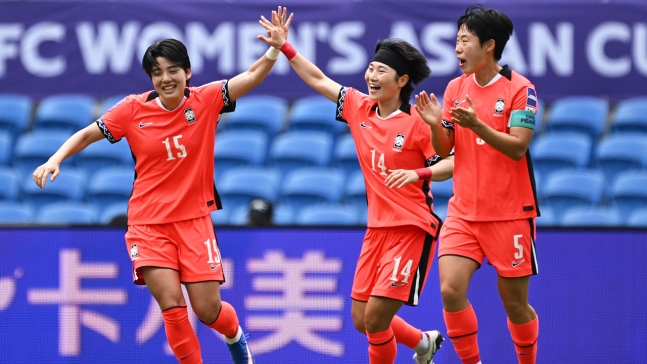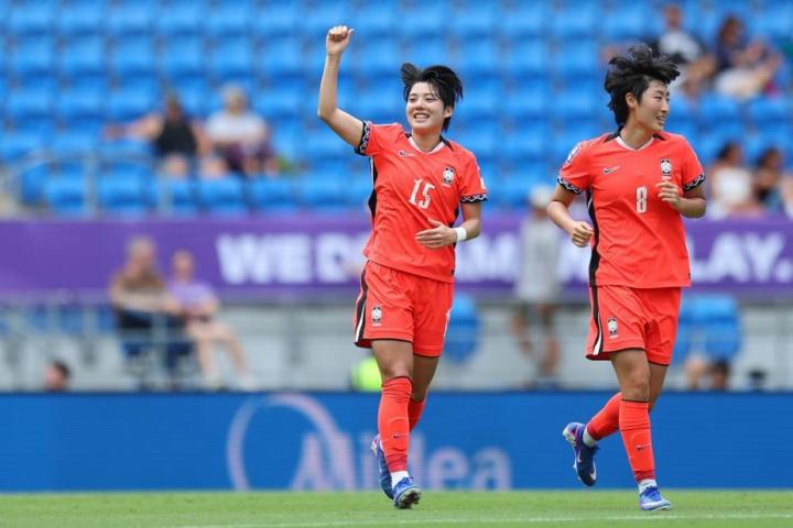 事实证明,申相又教练的用兵是对的。上半场一开始,韩国女足就取得梦幻开局。第12分钟,全侑卿在禁区内接到朴洙正的传球,扣过对手后卫直接左脚低射破门,为韩国女足取得领先。这粒进球也是她代表球队在亚洲杯首秀的首球!而仅仅不到2分钟,朴洙正在禁区外弧顶看到对手门将站位靠前,直接踢出一脚弧线球,皮球直挂球门左上角。2-0!这位在意甲AC米兰锻炼的年轻杀手,用个人亚洲杯首秀一传一射的成绩,为韩国女足早早锁定了胜局。