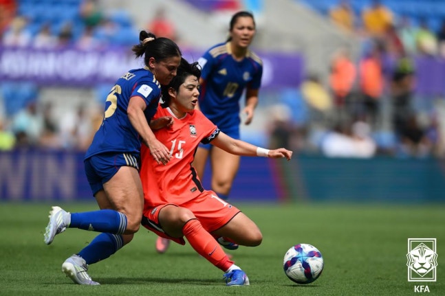 上半场结束前,韩国女足的另一名年轻前锋金信智也取得了进球,她在禁区内的低射再次洞穿对手球门。但主裁判判罚越位在先,取消了这位前锋的进球。半场战罢,韩国女足牢牢占据主动权,对手基本上没有任何机会,2-0的比分,反映了双方的战局。