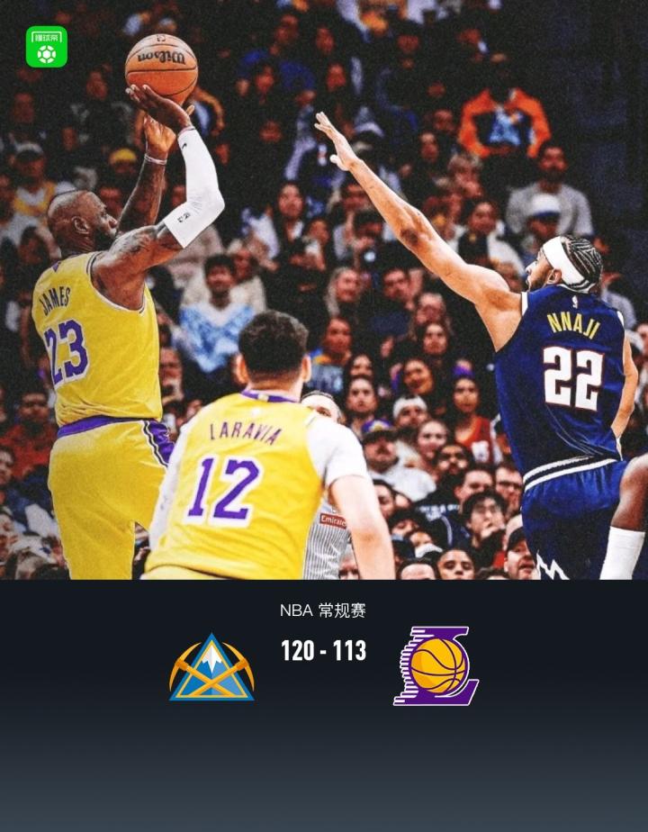 扫描下载懂球帝首页>动态> 掘金120-113力克湖人,约基奇28+12+13+9失误,东契奇27+11+7