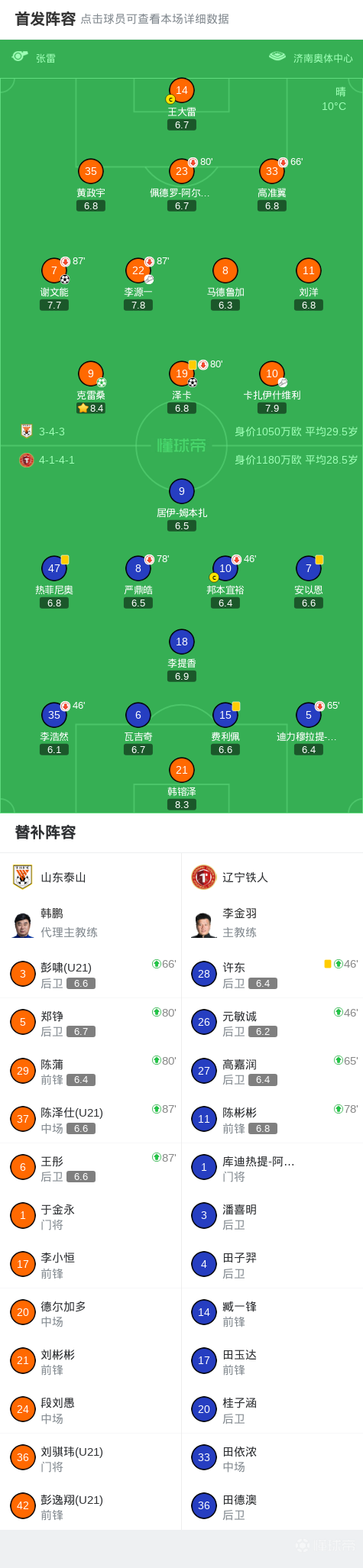 04-04 21:04山东泰山 vs 大连英博 比赛动态