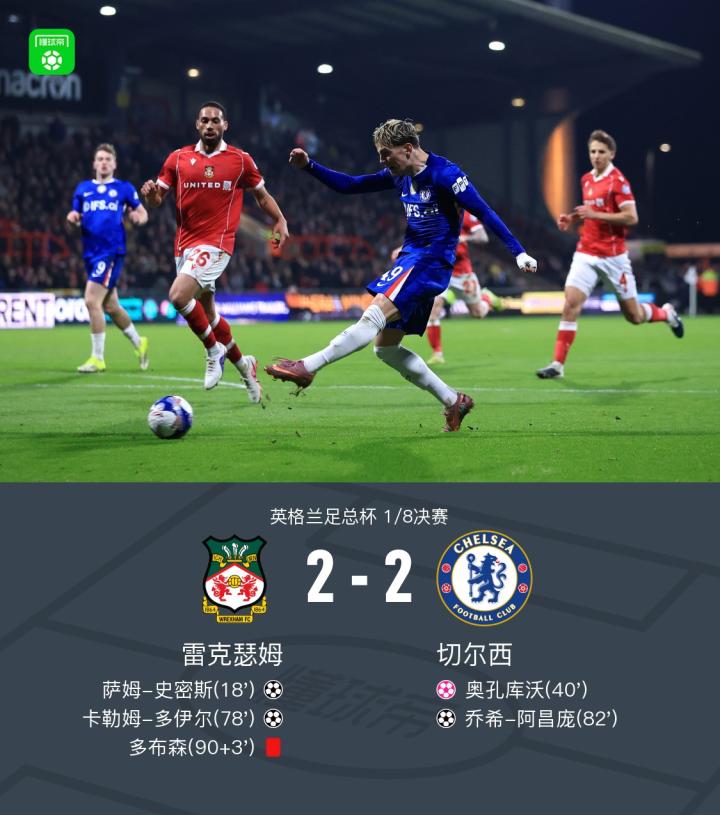 扫描下载懂球帝首页>动态> 常规时间:切尔西2-2雷克瑟姆,阿昌庞建功,加纳乔造乌龙