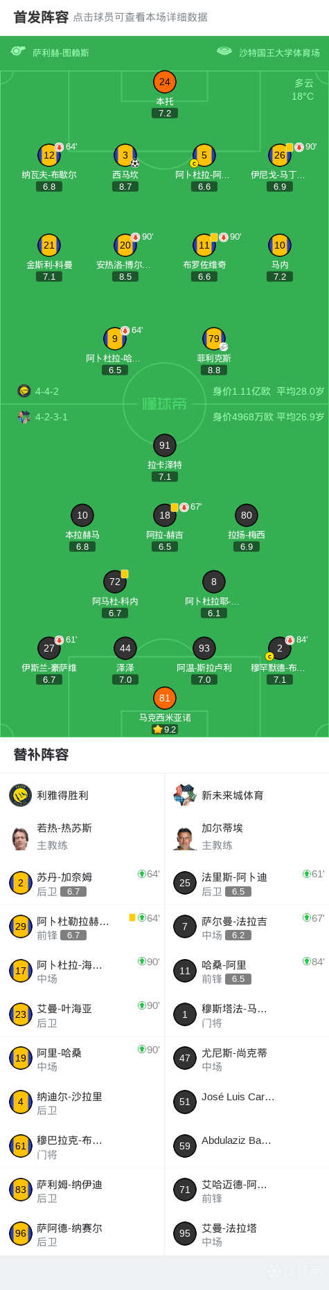 扫描下载懂球帝首页>动态> 利雅得胜利1-0新未来城体育,菲利克斯助攻西马坎绝杀,C罗伤缺