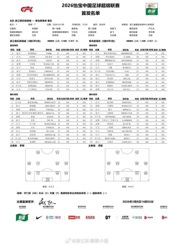 扫描下载懂球帝首页>动态> 浙江vs西海岸:五外援PK四外援;王钰栋、李昊、杨展彭首发