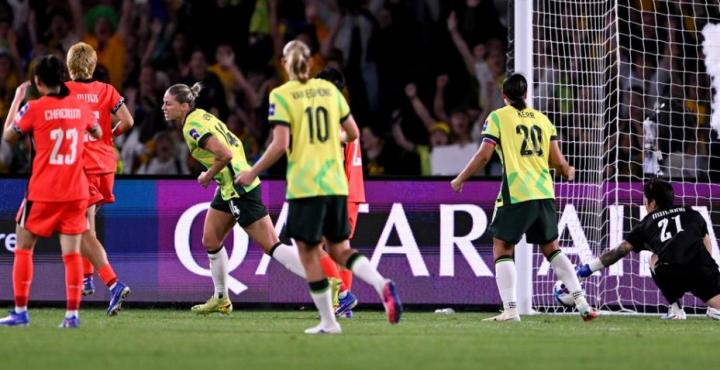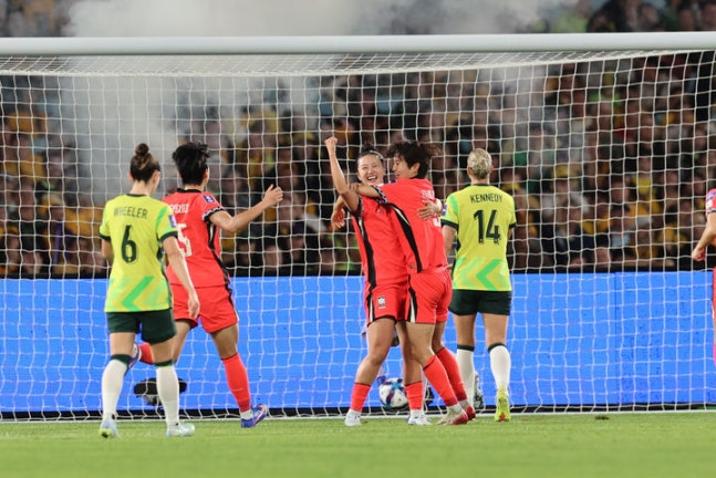 但足球比赛的美妙就在于它的不可预知性。此后的比赛,不甘心输球的澳大利亚展开了反扑,因为如果她们输给韩国,八强将遭遇B2的中国或朝鲜,而打平,则因为进球数少于韩国还是第二。因此澳大利亚疯狂进攻,韩国女足全面陷入被动。这也让人想起了1年前两队的比赛。第32分钟,澳大利亚利用一次角球机会通过门前配合完成破门,尽管慢镜头显示澳大利亚的进球是明显的越位,但主裁判依旧判罚进球有效。伤停补时阶段,澳大利亚队长科尔在禁区内怒射完成反超,半场结束,澳大利亚女足2-1领先。