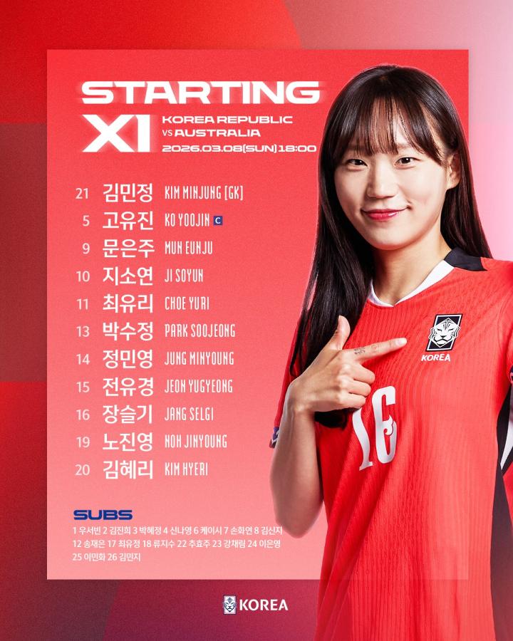 附:2026澳大利亚女足亚洲杯A组末战韩国阵容(4-3-3)