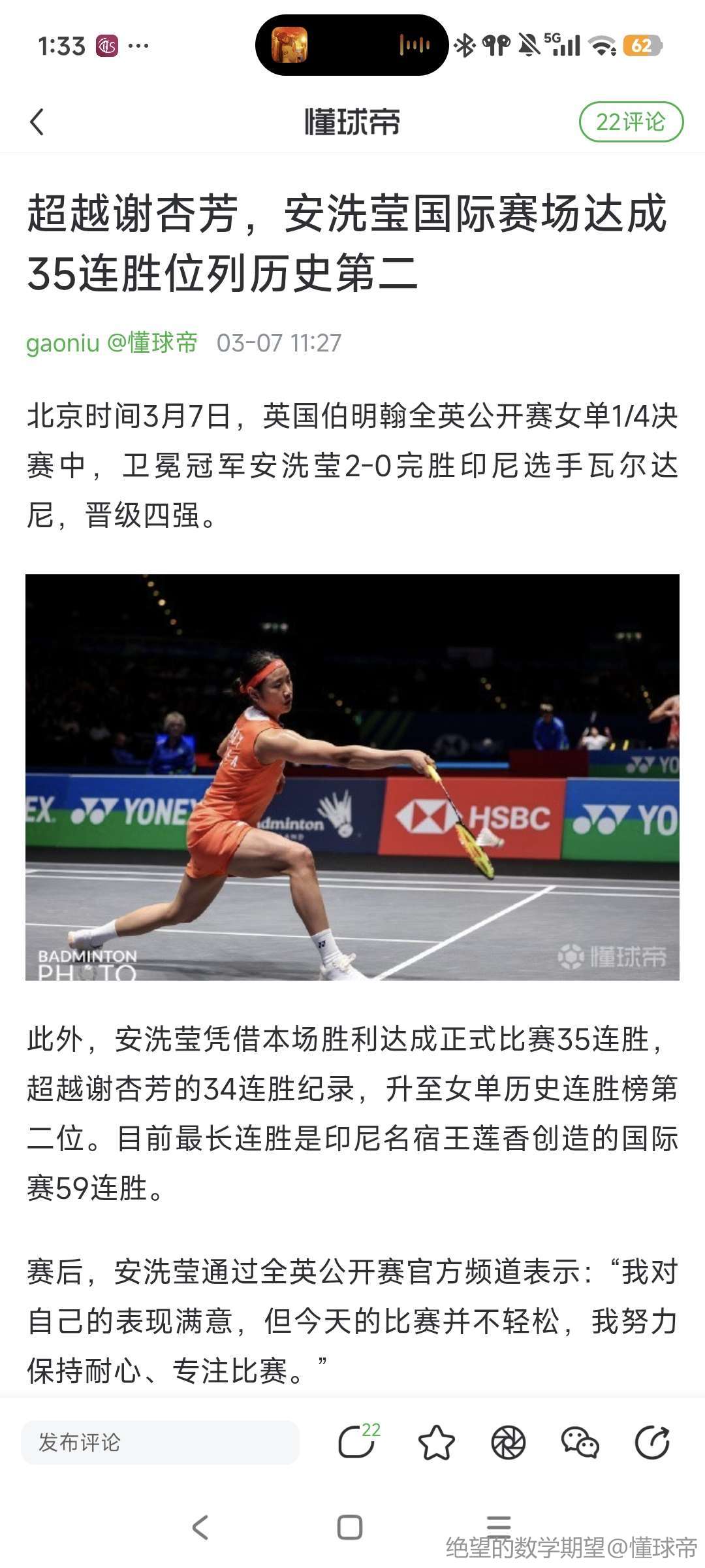 决赛:21-15、21-19 🇰🇷安洗莹【58分钟】