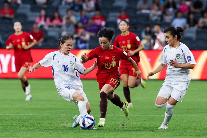 反观中国女足前两场比赛,似乎很难看出进攻中想干什么。所以,中国队的5个进球中,第1个进球是王霜的一记“神仙脚”,吊射令对方门将措手不及。张睿的第2个进球则是禁区外远射,碰对方后卫后折线入网。第3个进球是邵子钦的点球,是乌兹别克斯坦后卫拉拽衣服犯规白送的。第4个进球是中国队进攻队员和乌兹别克队后卫、门将撞到一起,李晴潼面对空门远射得手。只有第5球才是配合打入,张馨45度角斜传、李晴潼头球得手。