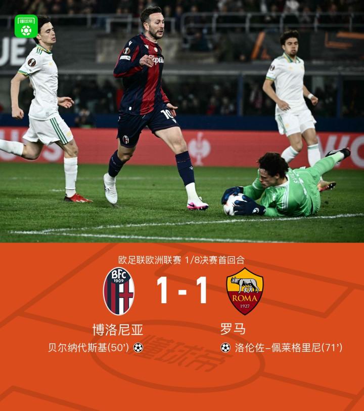 扫描下载懂球帝首页>动态> 博洛尼亚1-1罗马,贝尔纳代斯基破门,佩莱格里尼扳平