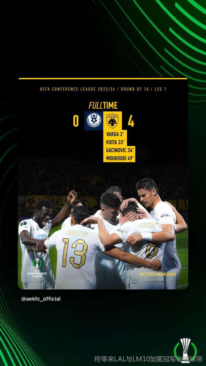 北京时间3月13日欧洲协会联赛 1/8决赛首回合,采列对阵雅典AEK。雅典AEK沃尔高破门,科伊塔破门,加齐诺维奇破门,穆库迪破门。最终比分采列 0-4 雅典AEK。