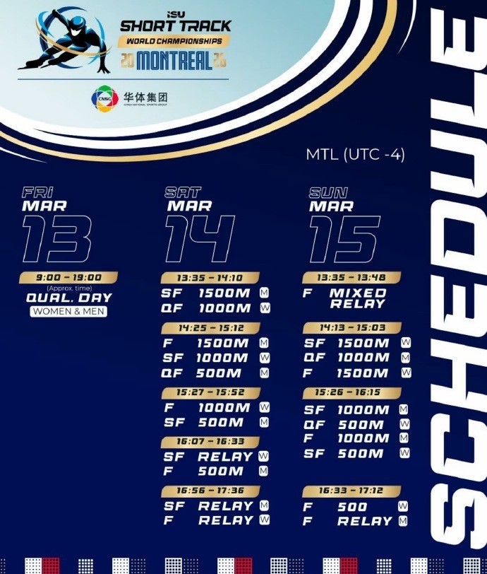 3月13日,2026蒙特利尔短道速滑世锦赛中国队将派出11人参赛,该比赛将于3月13日至15日在加拿大蒙特利尔举行。与米兰冬奥会相比,本次世锦赛中国男队名单变化较大。
