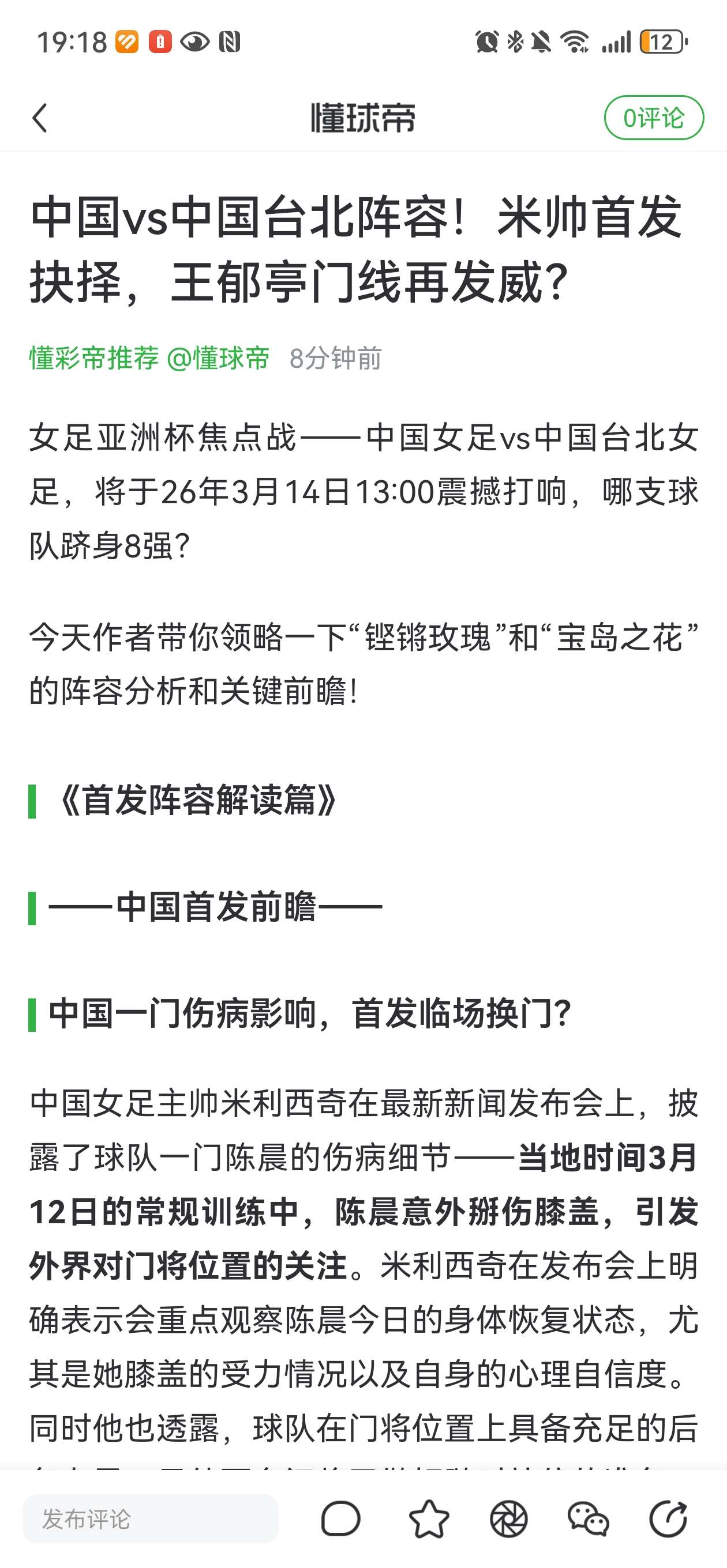 懂彩帝板块—中国女足VS中国台北女足,伤病悬念VS防守铁壁,谁能占据先机?