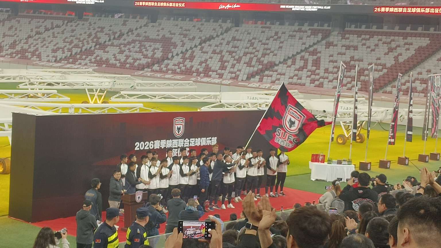出征仪式开始前,陕西联合足球俱乐部正式宣布2026赛季陕西联合主场将设立在西安国际足球中心。落户顶级的专业球场,别样氛围,不一样的观赛感受都让球迷们对新赛季充满期待。