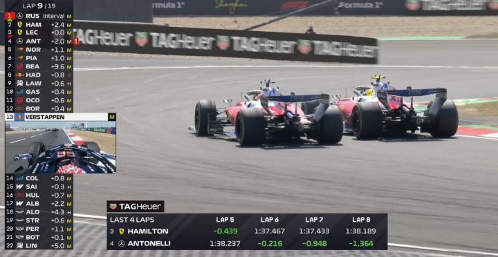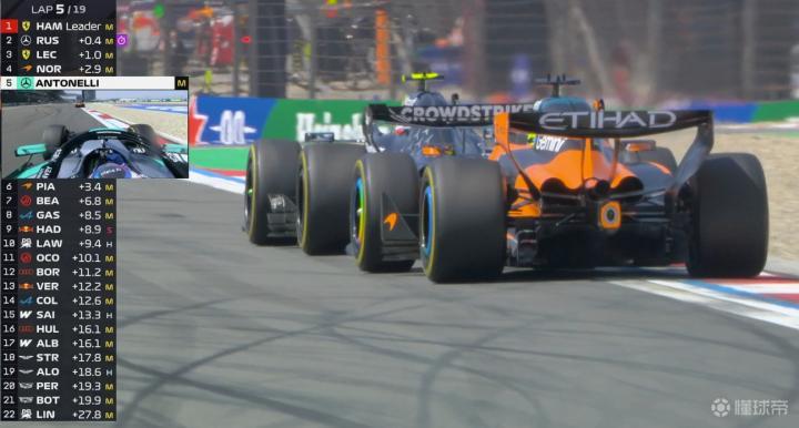 第五圈:起步不佳的安东内利上到第五,赛会正在调查他和哈贾尔起步阶段的碰撞