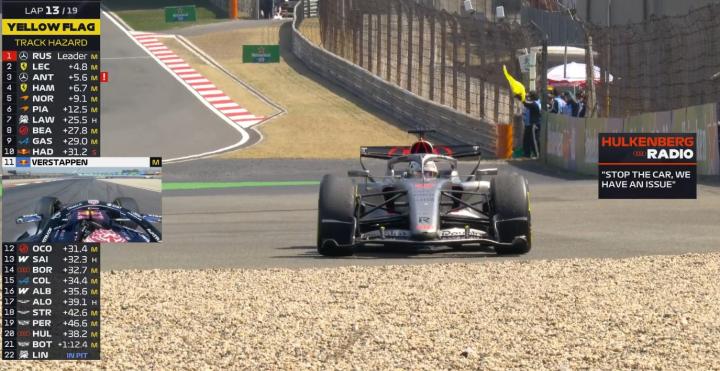 第13圈:霍肯伯格停在了路边退赛,安全车出动,博塔斯也出现了机械故障