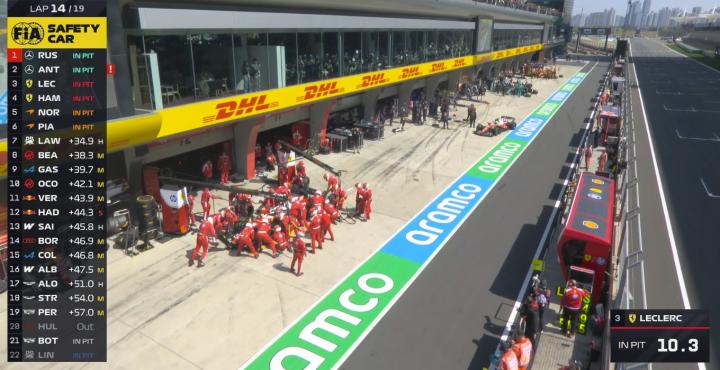 领先集团纷纷进站,但汉密尔顿损失了一些时间