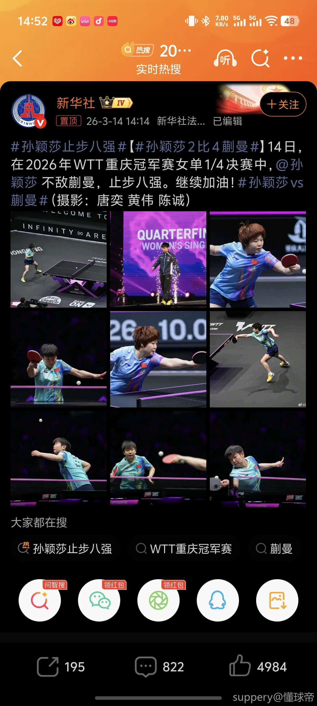 扫描下载懂球帝首页>动态> 蒯曼4-2力克孙颖莎,晋级重庆冠军赛女单四强