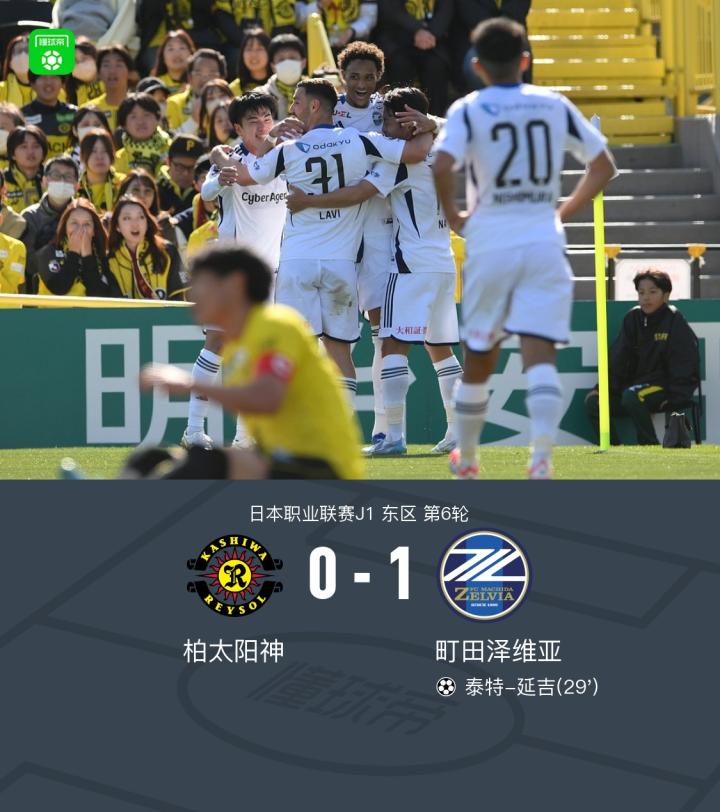 北京时间3月14日日本职业联赛J1 东区 第6轮,柏太阳神主场对阵町田泽维亚。町田泽维亚泰特-延吉破门。最终比分柏太阳神 0-1 町田泽维亚。
