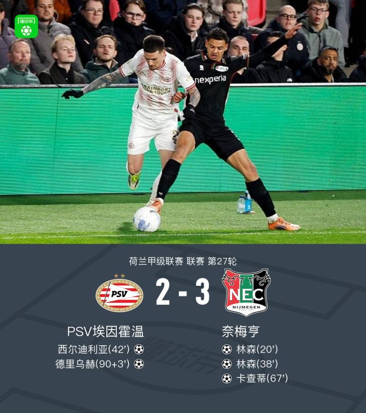 扫描下载懂球帝首页>动态> 埃因霍温2-3奈梅亨,林森双响,卡查蒂破门