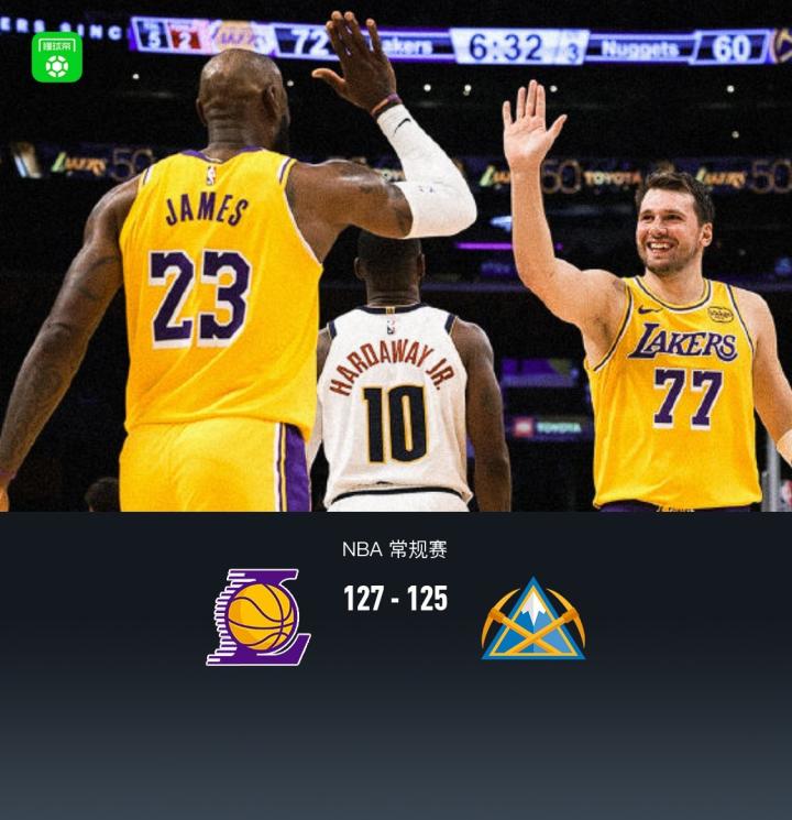 北京时间3月15日NBA 常规赛,洛杉矶湖人对阵丹佛掘金。上半场湖人一度领先17分,半场湖人61-50掘金,第三节掘金追平比分,末节掘金一度领先8分,随后湖人反扑追近比分,常规时间最后阶段掘金领先双方均犯规战术送对手罚球,里夫斯故意罚丢二次进攻绝平118平进加时,加时赛掘金穆雷迅速6犯毕业,最后时刻湖人东契奇撤步中投绝杀,最终湖人127-125掘金。