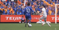 第90+1分钟,笠柳翼左路突破至禁区,小角度射门被门将封挡出底线