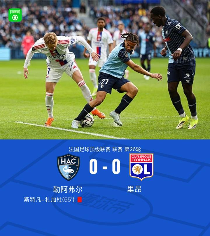 扫描下载懂球帝首页>动态> 里昂客场0-0十人勒阿弗尔,斯特凡-扎加杜染红,内戈抽射中柱